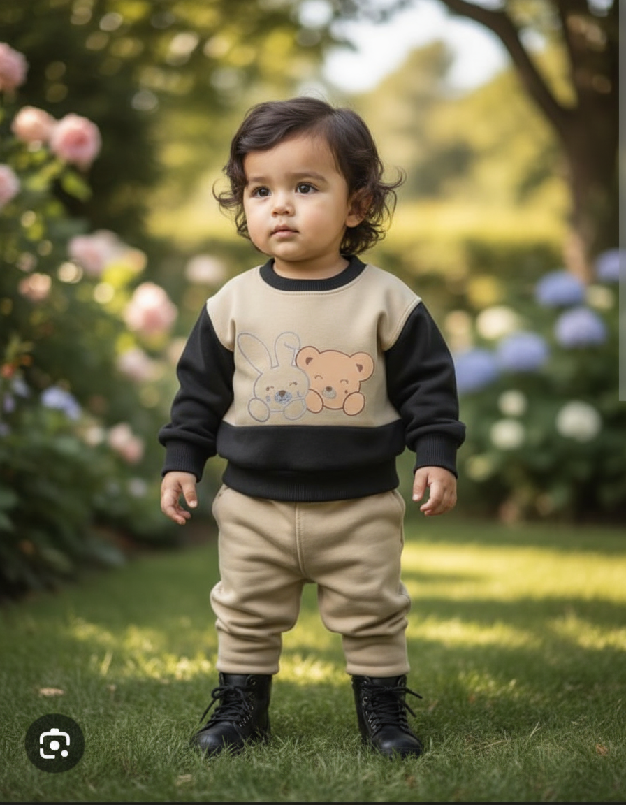 Black & Skin Bunny Printed Kids Winter Suit ( Each )