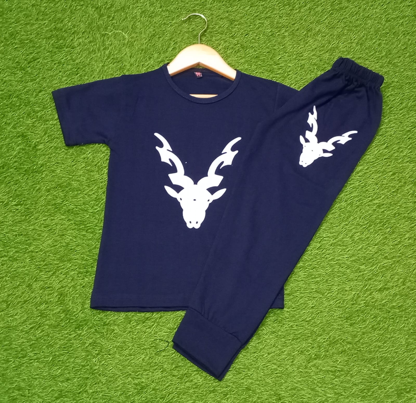 Blue Markhor Printed Half Sleeve Kids Suit (Each)