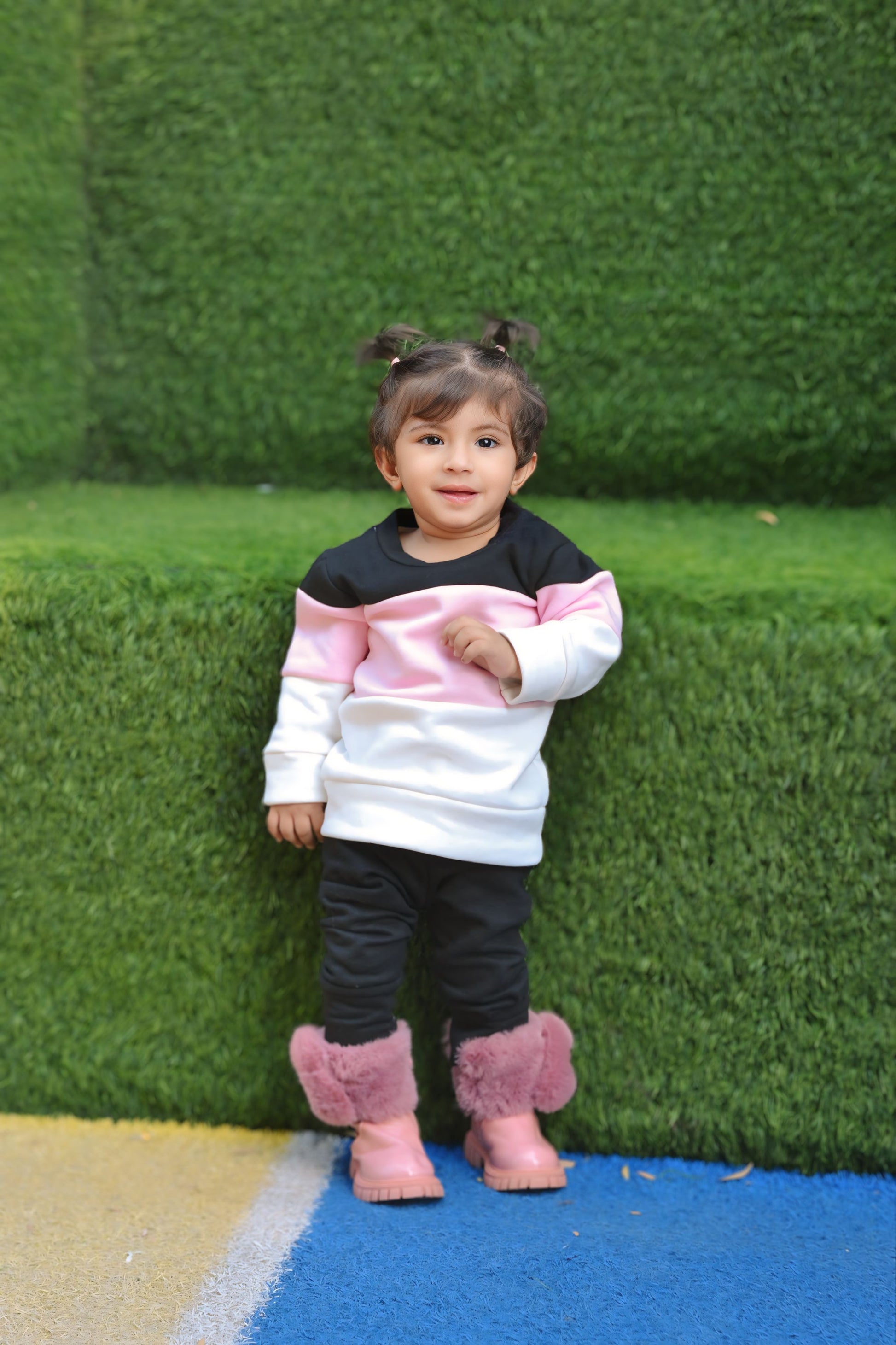 Fleece Fabric Black & Pink Panel Kids Winter Suit ( Each )