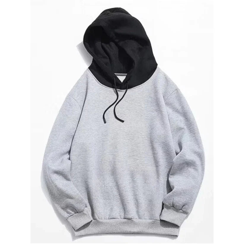 Grey With Black Basic Kangaroo Hoodie